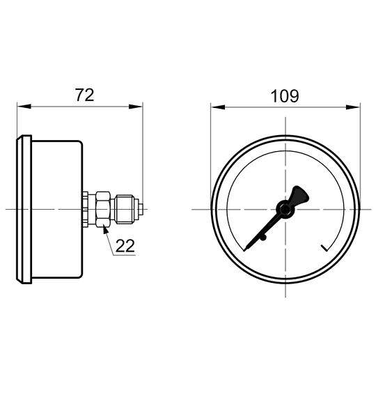Imagen Referencial: MIT5-G62 (B19-B22)Manómetro de servicio con líquido amortiguador Para gases y líquidos no corrosivosClase 1.6 según EN 837...