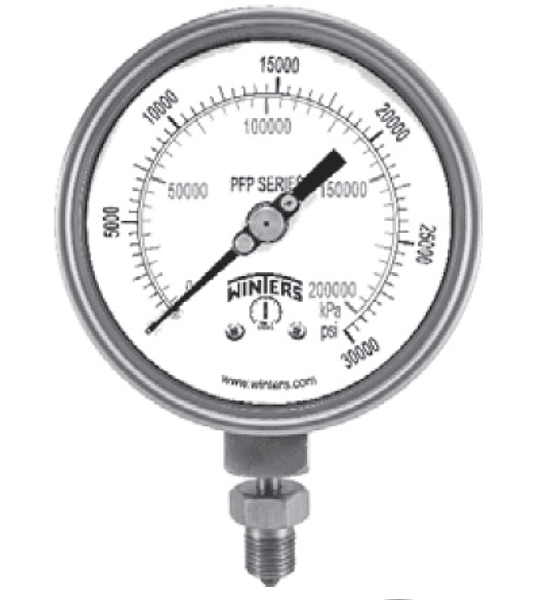 MANOMETRO WINTERS SERIE PFP 100MM FULL INOX ABAJO 1/2"NPT C/LAMINA DE SEGURIDAD (IMAGEN REFERENCIAL)
