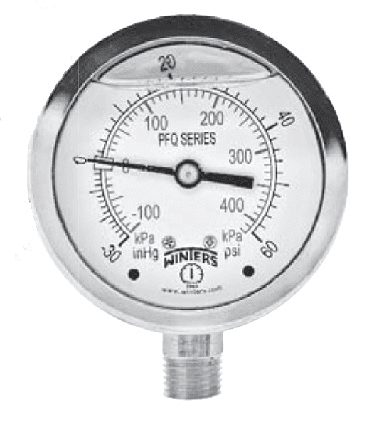 MANOVACUOMETRO WINTERS PFQ 2,5'' X 1/4 NPT INF -30''HG/BAR C/GLIC. INOX BRONCE (IMAGEN REFERENCIAL)